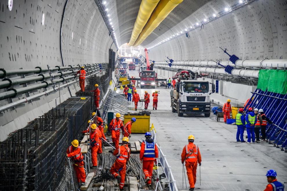 2024年12月20日,中铁十四局建设者在黄岗路穿黄隧道内施工作业。新华社记者 朱峥 摄