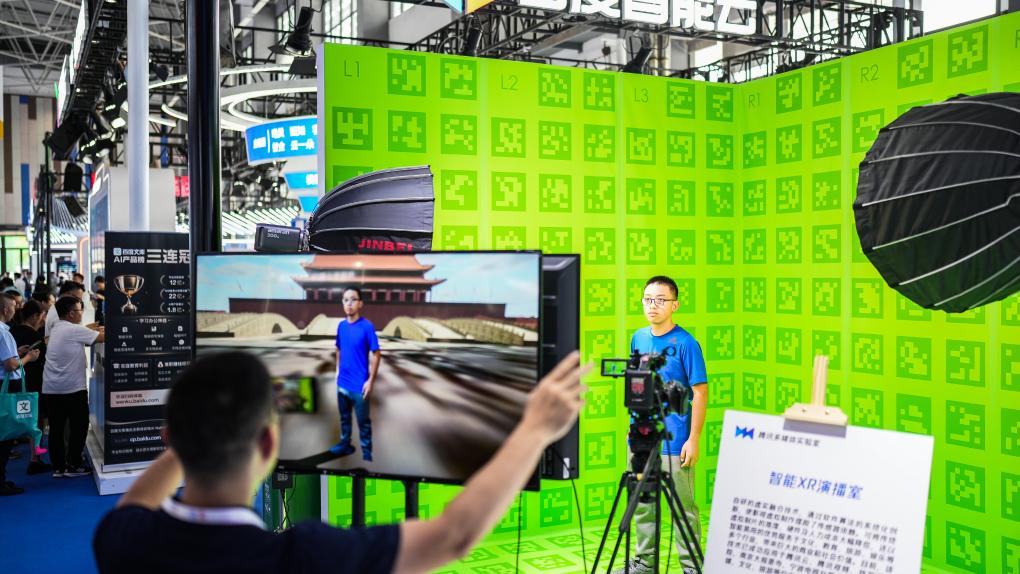 2024年8月28日,参观者在数博会展馆内体验智能XR演播室。新华社记者 陶亮 摄