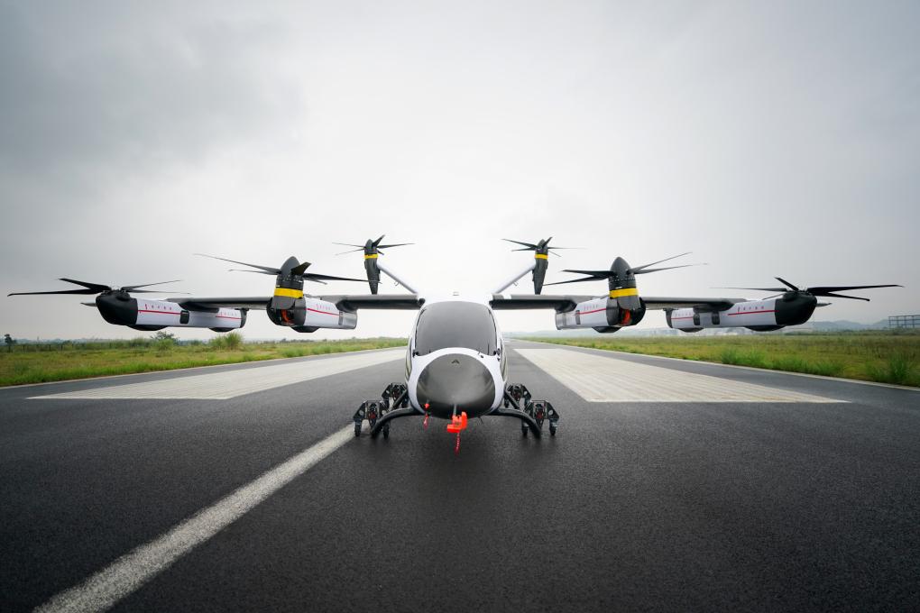 2024年10月12日,在成都淮州机场拍摄的沃飞长空AE200电动垂直起降航空器(eVTOL)。新华社记者 胥冰洁 摄