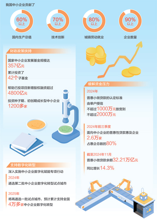 中小企业是推动创新、促进就业、改善民生的重要力量。近年来,各地区各部门把支持中小企业发展放在更加突出位置,坚持管理与服务并重、帮扶与发展并举,强化政策惠企、环境活企、服务助企、创新强企、人才兴企,进一步壮大中小企业规模。