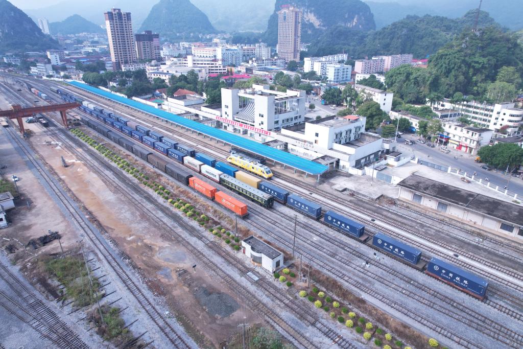 2024年10月17日,在国门车站凭祥站,中越班列列车整装待发。新华社发