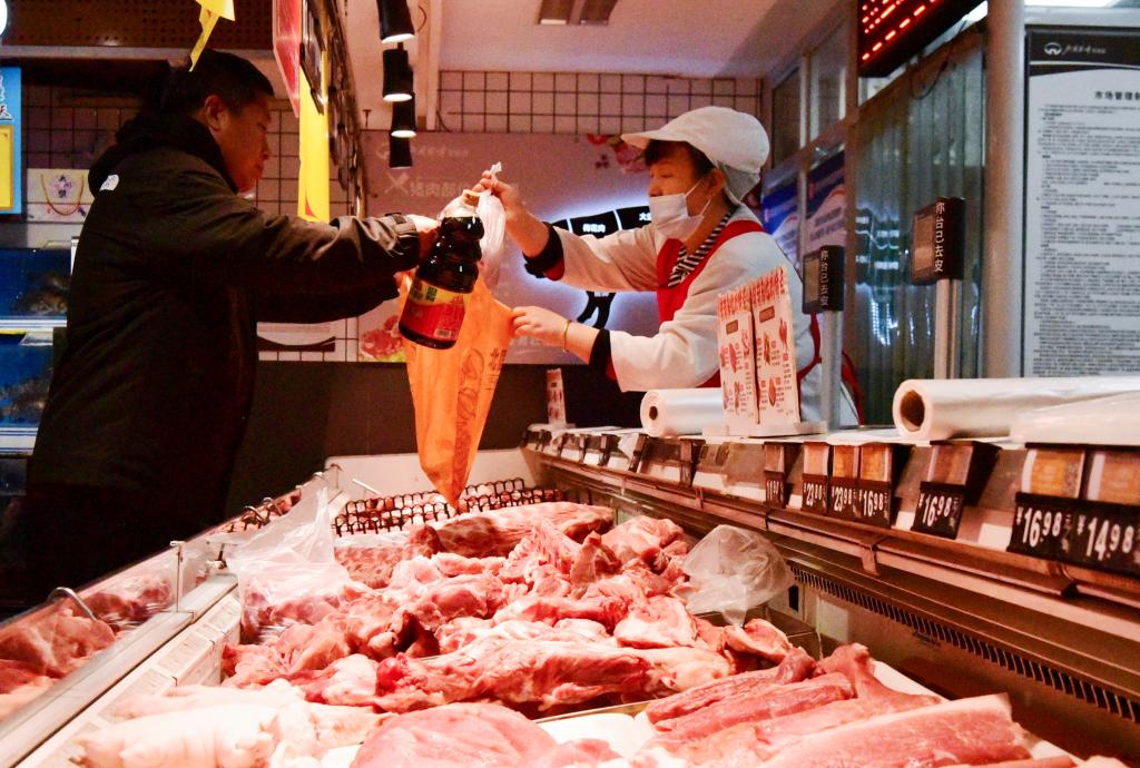 2024年12月9日,消费者在河北省石家庄市栾城区一家超市选购肉类。新华社发(李明发摄)