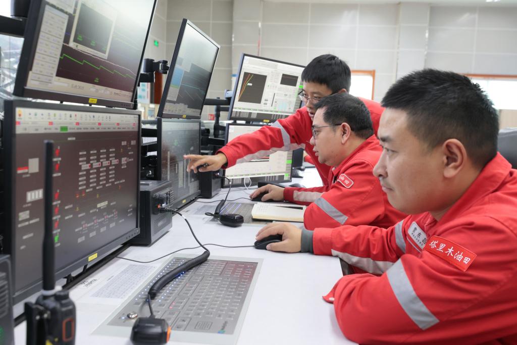 塔里木油田技术人员通过云数据分析,适时优化生产流程,提高生产效率(2023年10月31日摄)。新华社发(程会武 摄)