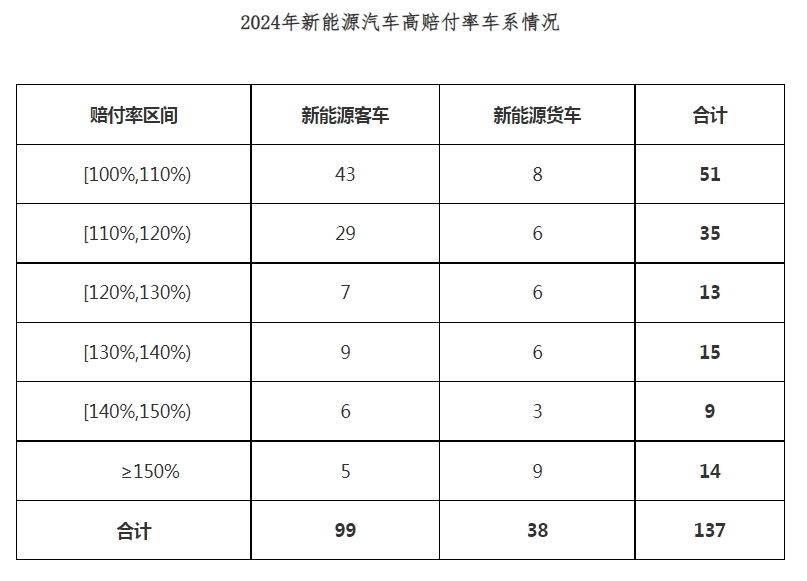 新华社北京1月24日电(记者张千千)中国精算师协会和中国银行保险信息技术管理有限公司24日发布的数据显示,2024年,我国保险业共承保新能源车系(一个汽车品牌旗下的一类车型集合)2795个,其中赔付率超过100%的高赔付车系有137个,其中客车99个、货车38个。