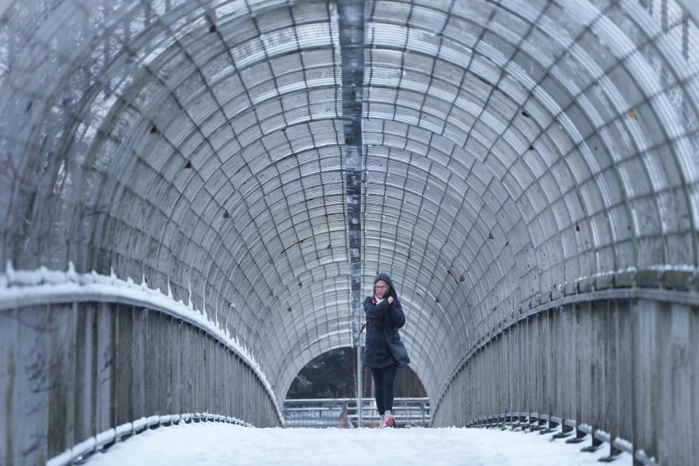 1月5日,一名女子行走在英国曼彻斯特一处过街桥上。新华社发(乔恩·休珀摄)