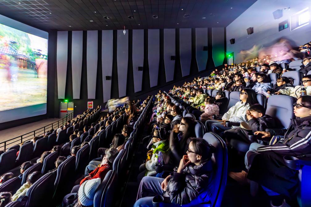 1月31日,观众在贵州省黔西市的一家电影城观看春节档电影《哪吒之魔童闹海》。新华社发(范晖 摄)