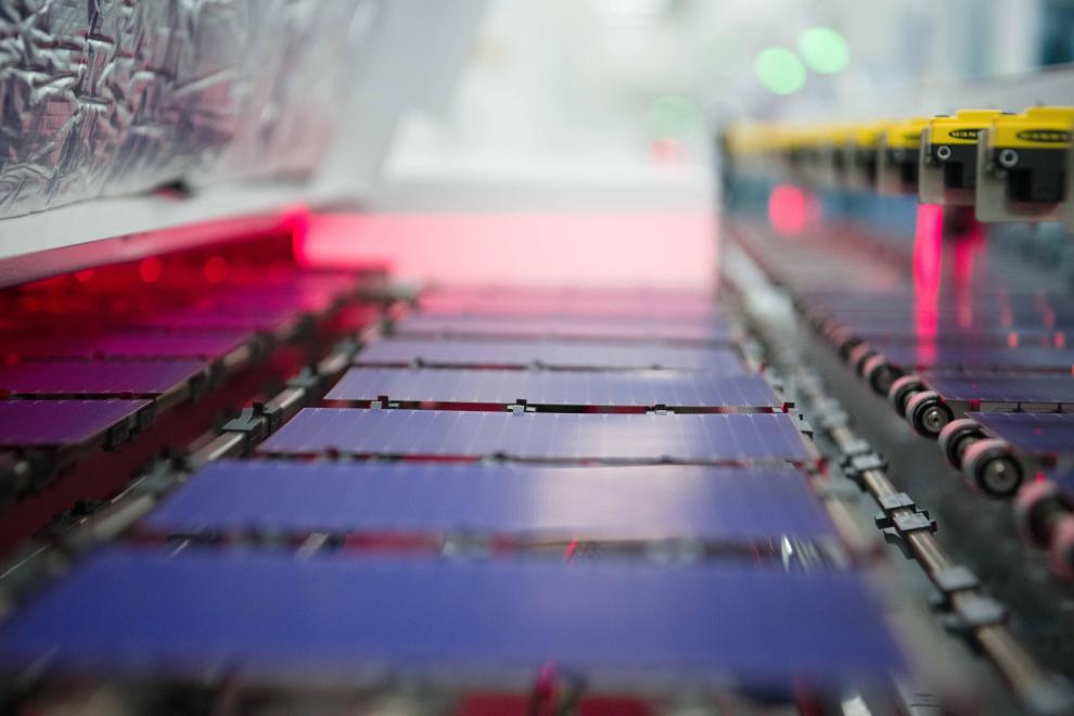 这是在安徽华晟新能源科技股份有限公司的异质结光伏电池及组件工厂内拍摄的智能化产线(2024年8月20日摄)。新华社记者 张端 摄