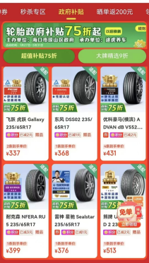 以轮胎产品举例,用户上途虎养车APP购买轮胎,进入政府补贴专区下单指定轮胎商品,即可享受政府补贴9折优惠,部分商品更可享至高75折优惠。其中,用户购买参加“晒单返加油充电金”促销活动的相关轮胎商品,在指定时间前于途虎养车工场店完成安装后“晒单“,还可额外参与返加油充电金活动,至高可返200元加油或充电金。