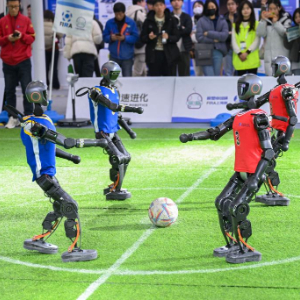 机器人踢足球。新华社记者 陈浩明 摄