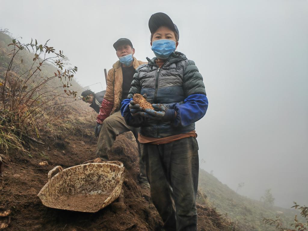 2025年1月4日,云南省昭通市彝良县荞山镇的村民在采收天麻。新华社记者林碧锋 摄