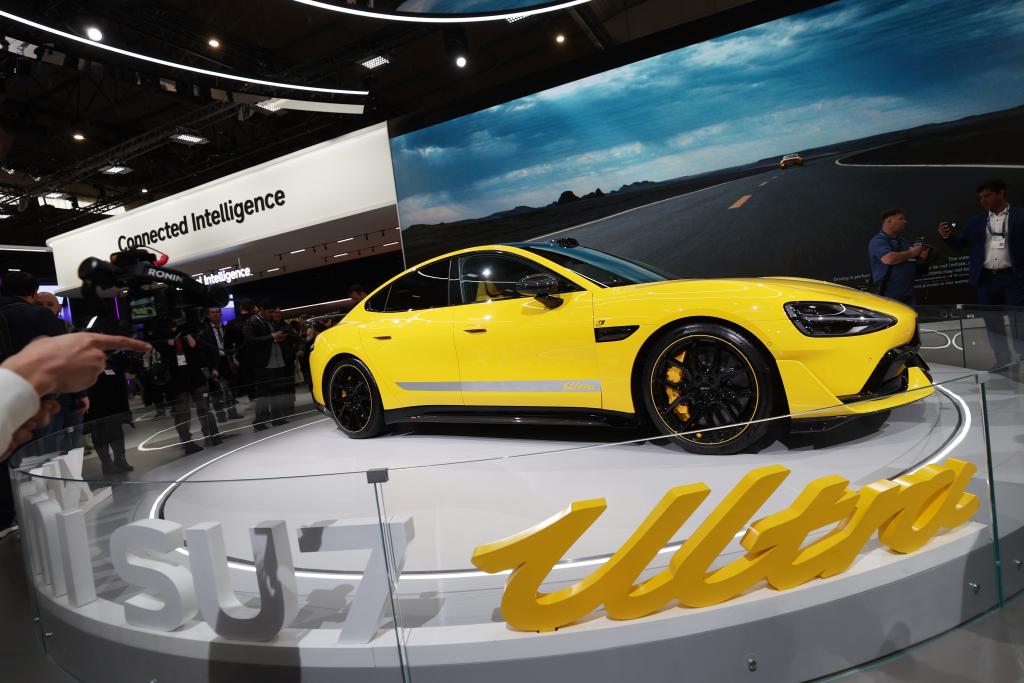 2025年3月3日,小米SU7 Ultra汽车在西班牙巴塞罗那举行的2025年世界移动通信大会上展出。新华社记者 赵丁喆 摄