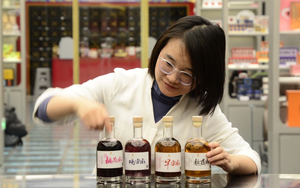 2月25日,同仁堂知嘛健康北京正大店内的员工在配制中草药草本饮品。新华社记者 李欣 摄