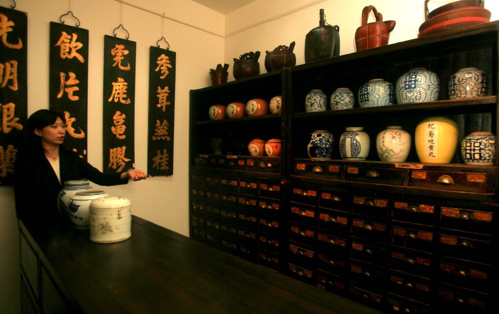 观众在参观同仁堂博物馆内的药柜(2007年4月9日摄)。新华社发