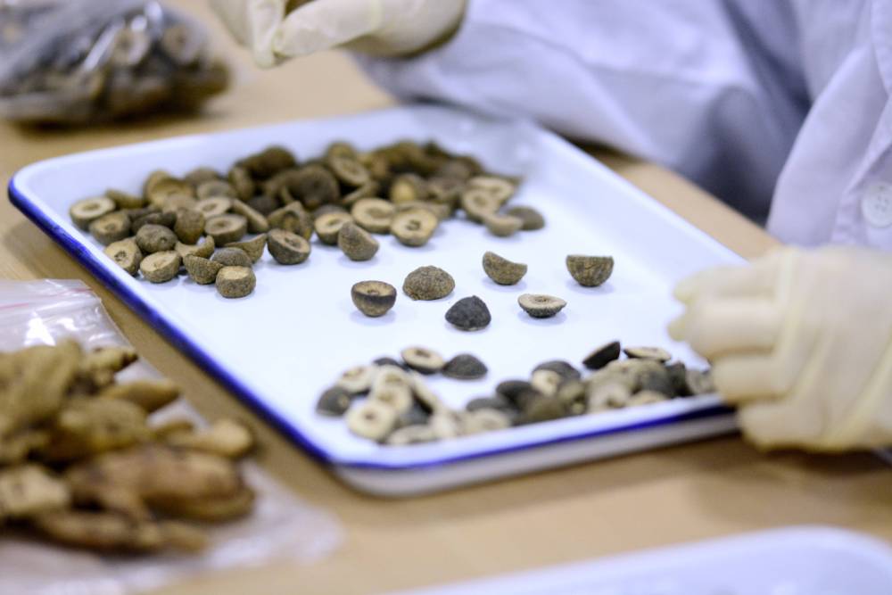 2月25日,北京同仁堂科技发展股份有限公司亦庄分厂技师李宁在检查手工摇制的西黄丸 。新华社记者 李欣 摄
