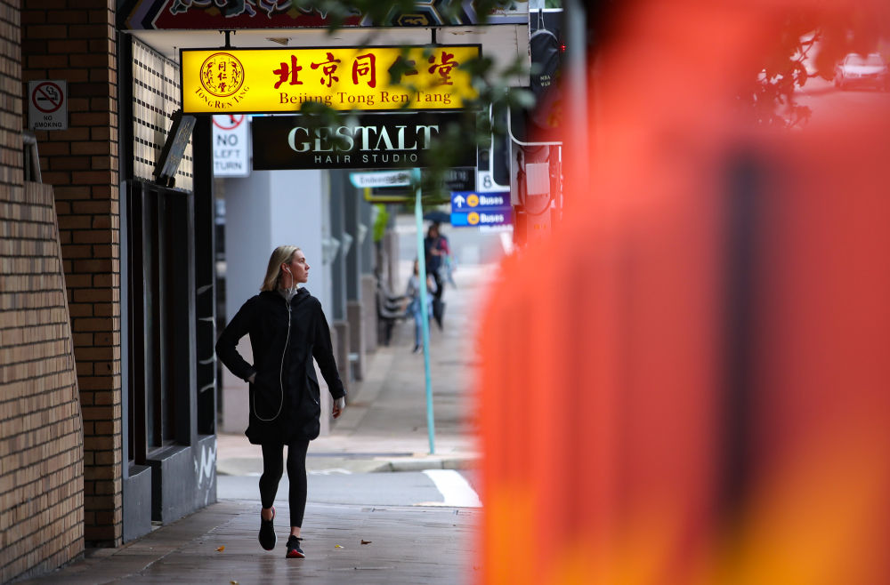 一名妇女路过澳大利亚悉尼街头的一家同仁堂药店(2020年1月10日摄)。新华社记者 白雪飞 摄