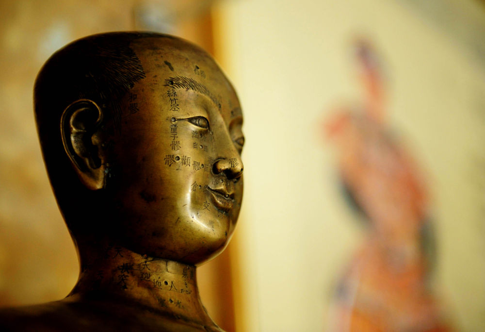 这是同仁堂博物馆的镇馆之宝——针灸铜人(2008年3月10日摄)。新华社记者 王建威 摄