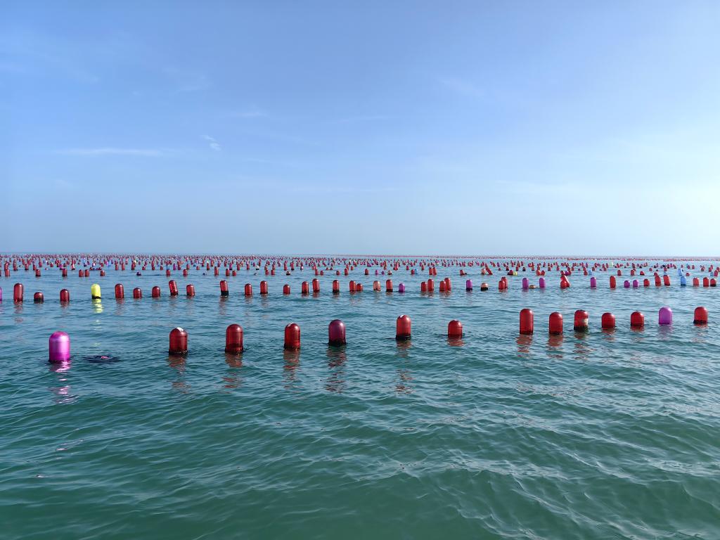 乐园村养殖牡蛎用的浮漂。新华社记者 邵琨 摄