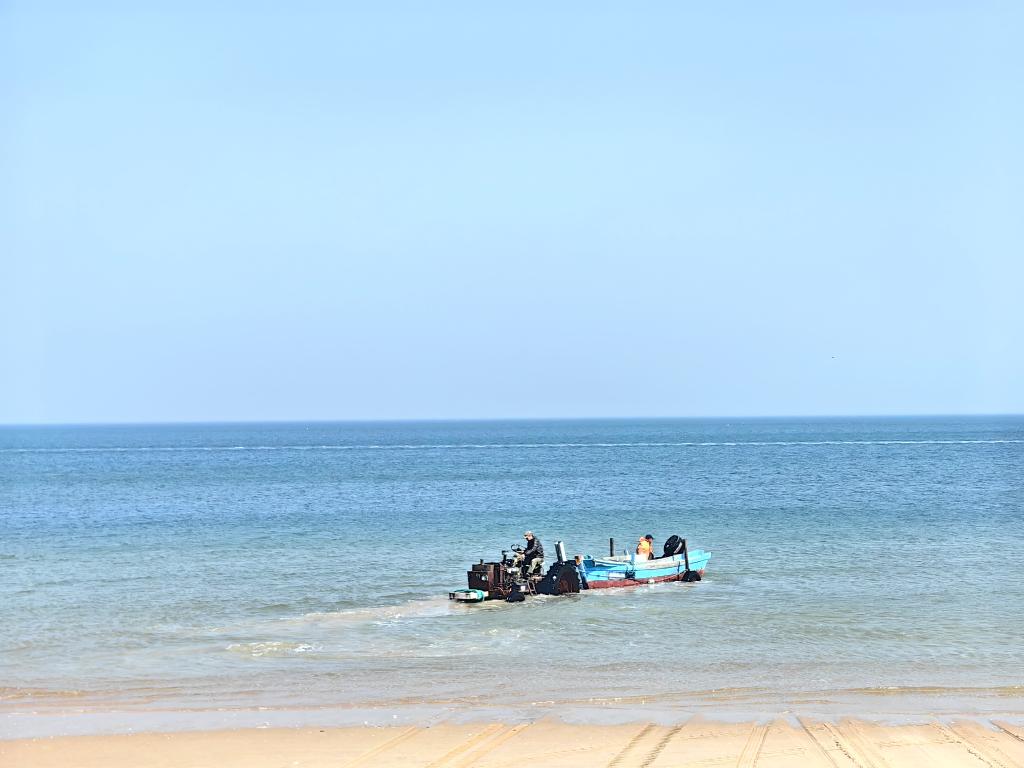 说话间,记者先前见到的那艘上岸渔船又回到海里继续作业。姜克顺说:“它这是把没长大的海肠和竹蛏又送回海里了,让它们继续生长。很快就起风了,再捕捞两次就要停工,我们要赶在12点前完成作业。”