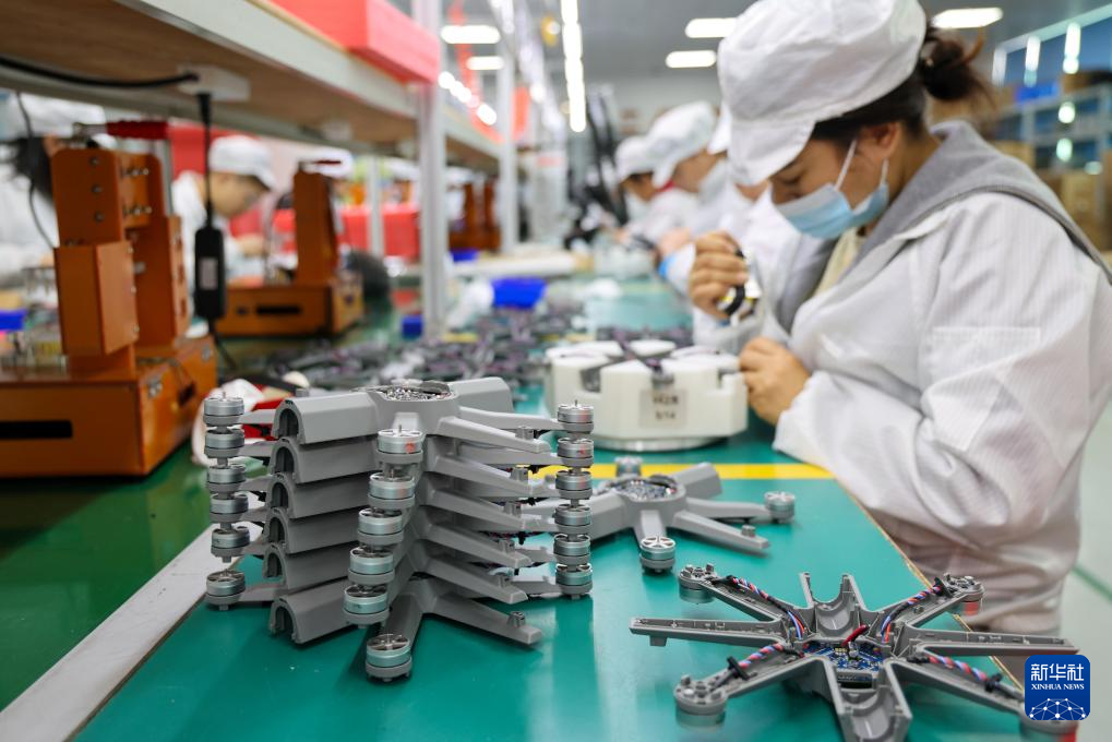 在位于深圳市龙华区的大漠大智控生产车间,工人在生产第四代无人机(2025年3月18日摄)。新华社记者 梁旭 摄