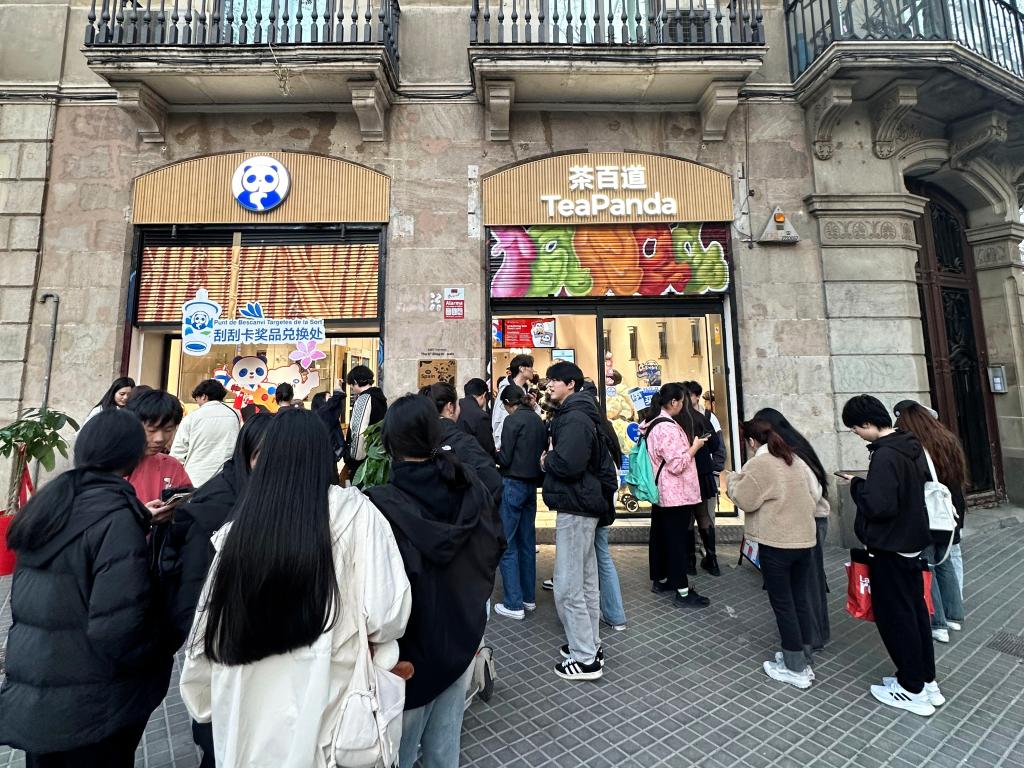 2月14日,茶百道的欧洲首店在西班牙巴塞罗那开业。新华社发