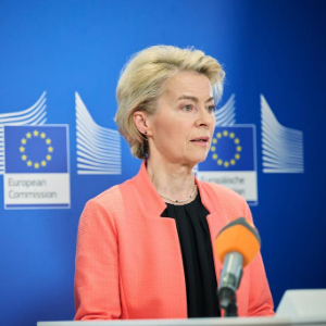 4月3日,在乌兹别克斯坦撒马尔罕,欧盟委员会主席冯德莱恩发表声明。新华社发(欧盟供图)