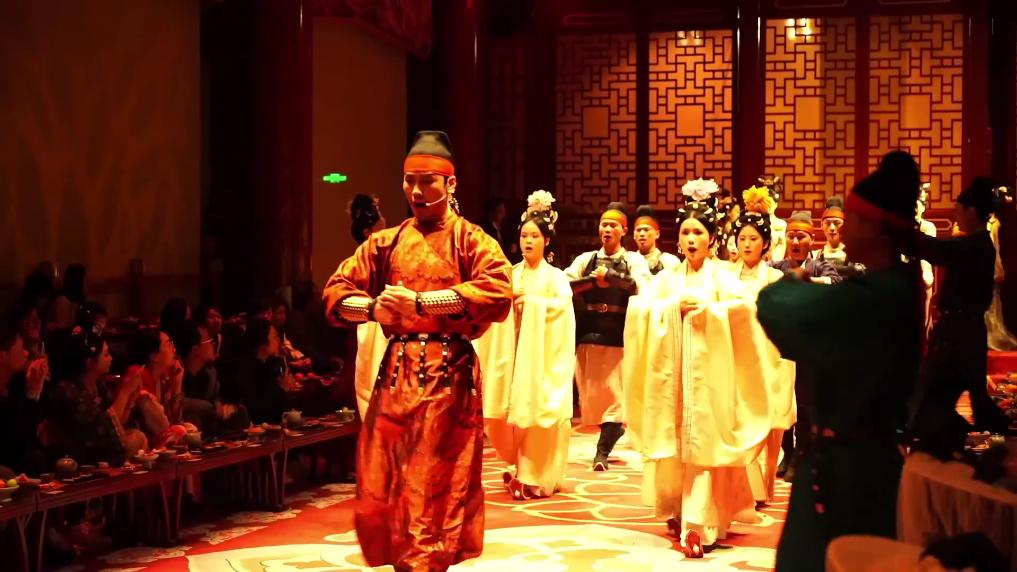 《唐宫乐宴》是隋唐洛阳城景区打造的集行进式唐风演艺、剧本式互动游戏、沉浸式角色体验、多元化消费于一体的新文旅产品。与此同时,这里上演的《天门报时》《神都迎宾》《簪花吟》等精彩演艺,每天都吸引了大量游客前来体验打卡。