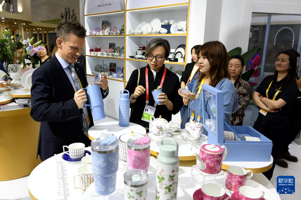 4月13日在第五届消博会英国国家馆拍摄的餐具。新华社记者 蒲晓旭 摄