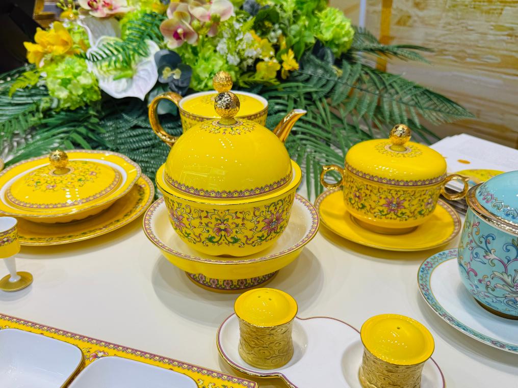 来到广交会二十多年的“老朋友”——深圳市斯达高瓷艺有限公司的展位,仿佛步入一个巨大的调色盘,抬头可见的珐琅彩瓷器流光溢彩,诉说着跨越历史的匠心传承。