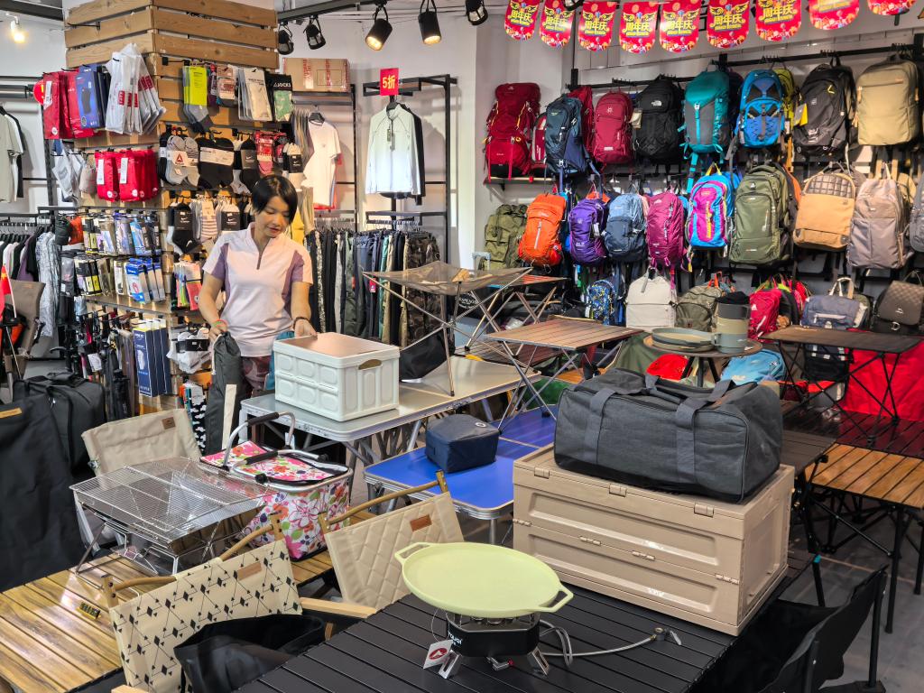 在南宁风行户外用品集合店,露营野炊、登山徒步等产品销售火热。店铺主理人吕宏萍说,当前露营户外项目已从专业玩家普及到普通百姓,近3年店铺营业额保持每年30%的增长。