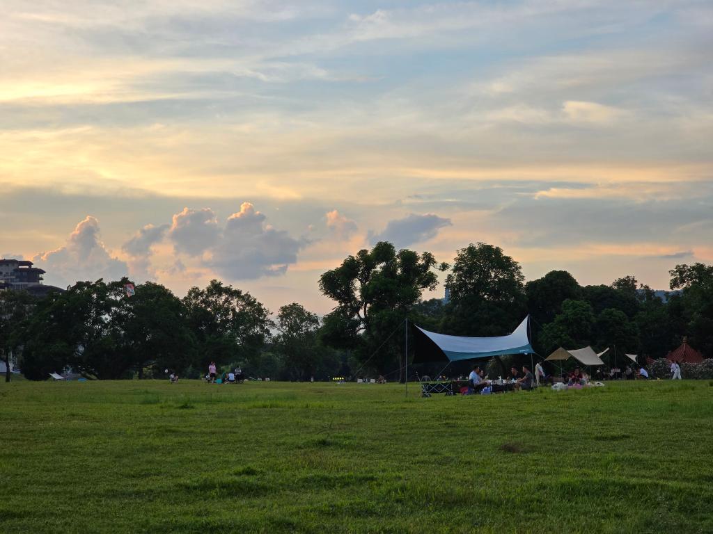 市民在南宁市滨江公园露营。新华社记者 农冠斌 摄