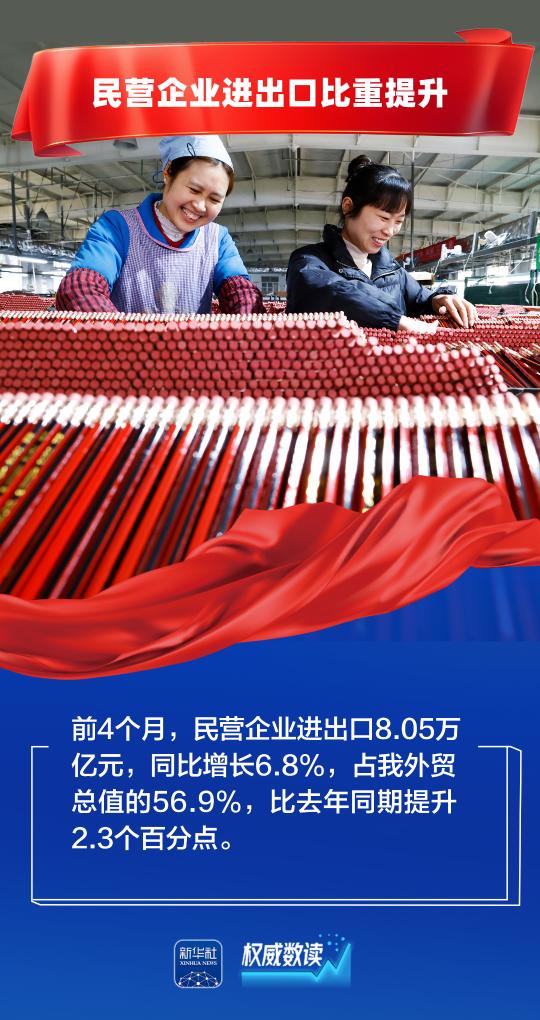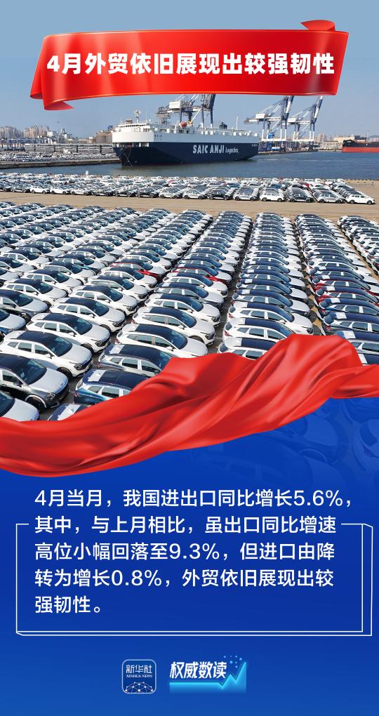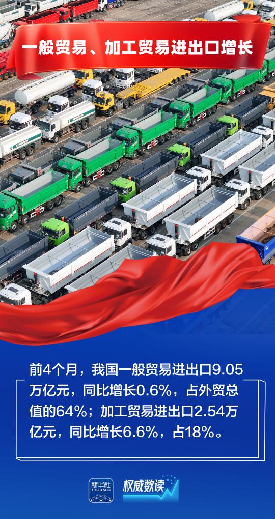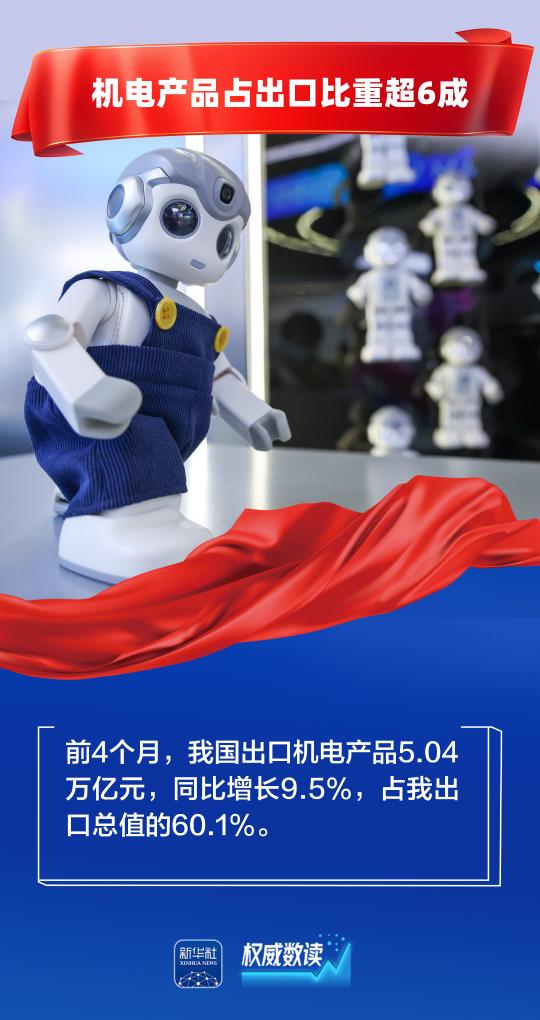 海关总署9日发布数据显示,今年前4个月,我国货物贸易进出口总值14.14万亿元,同比增长2.4%,延续平稳增长态势。其中,出口机电产品5.04万亿元,增长9.5%,占出口总值的60.1%。