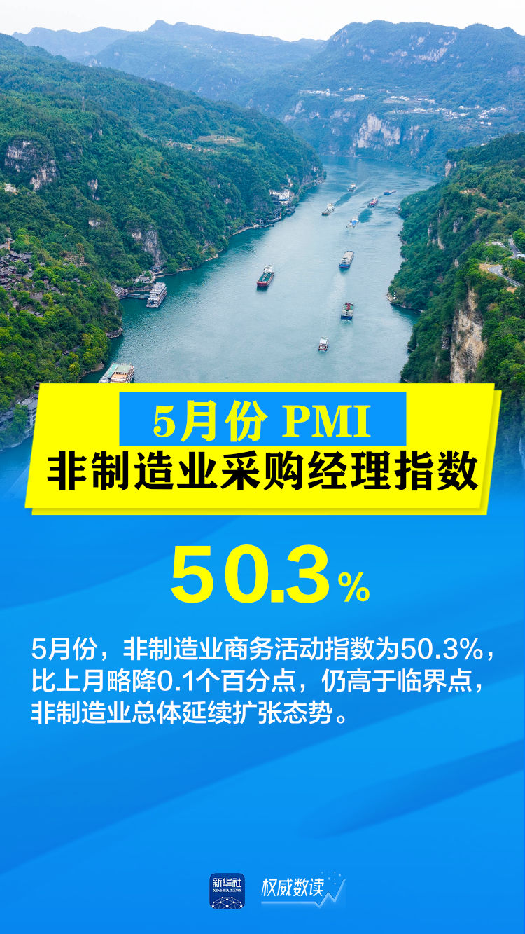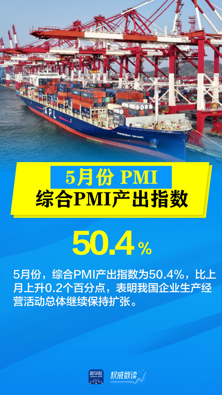 国家统计局服务业调查中心、中国物流与采购联合会5月31日发布的数据显示,5月份,制造业采购经理指数(PMI)为49.5%,比上月上升0.5个百分点,制造业景气水平改善。综合PMI产出指数为50.4%,比上月上升0.2个百分点,我国经济总体产出保持扩张。