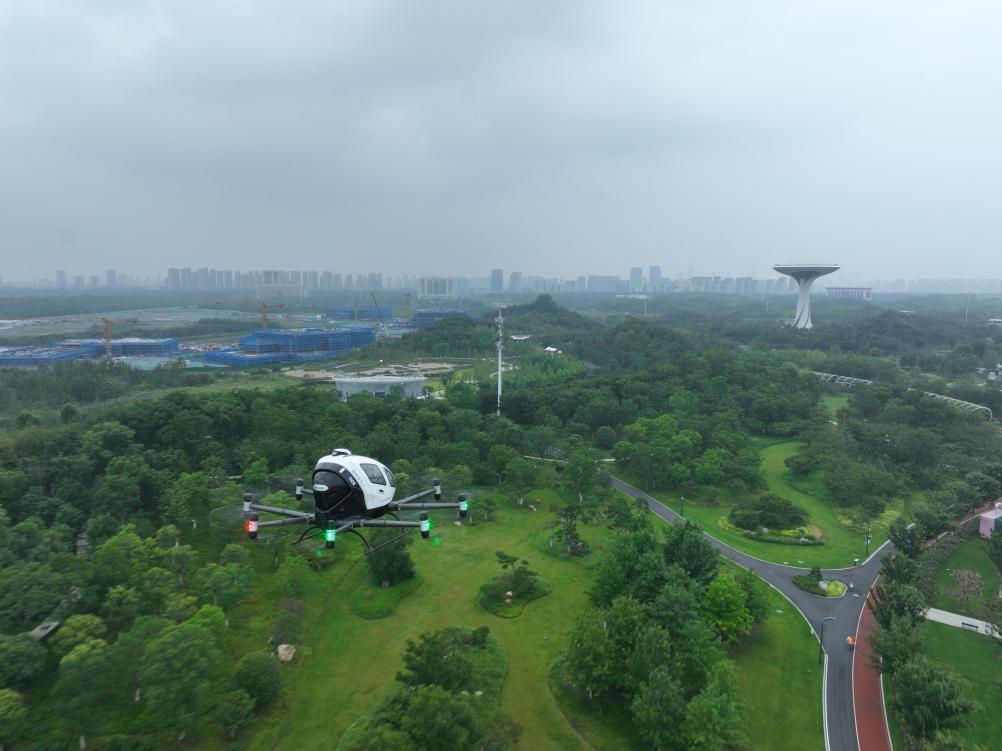 一架电动垂直起降航空器在合肥骆岗公园演示飞行。新华社发(采访对象供图)