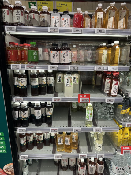 6月24日,位于北京市海淀区清河的一家京东七鲜超市饮料售卖货架上摆放了多种药食同源饮品 新华网钱琪莹 摄