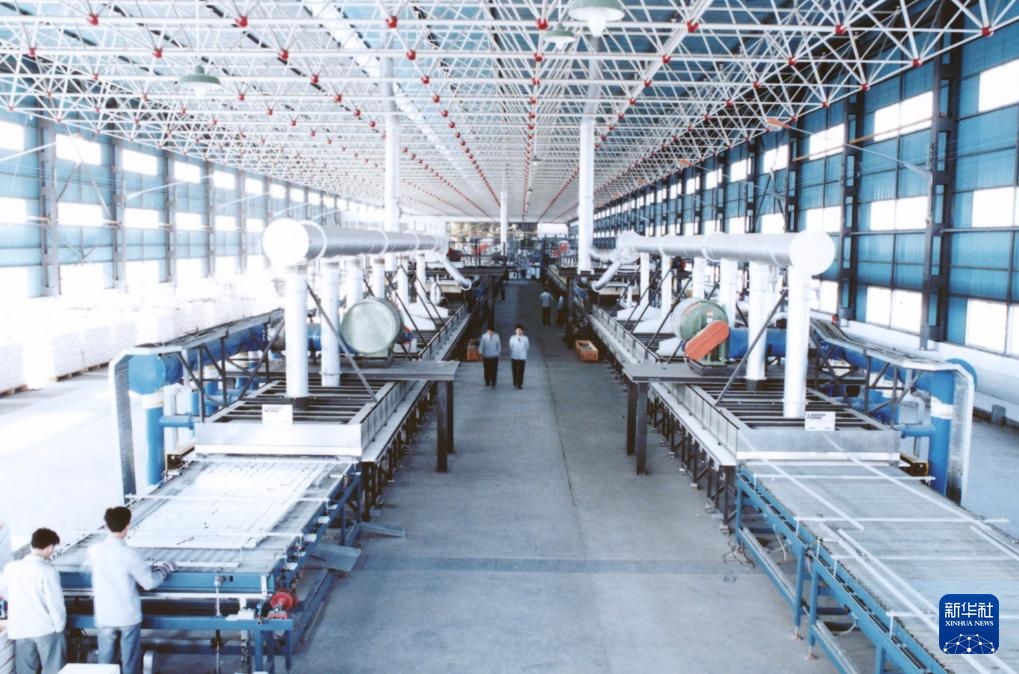 20世纪90年代三环公司瓷砖生产现场(资料照片)。 新华社发