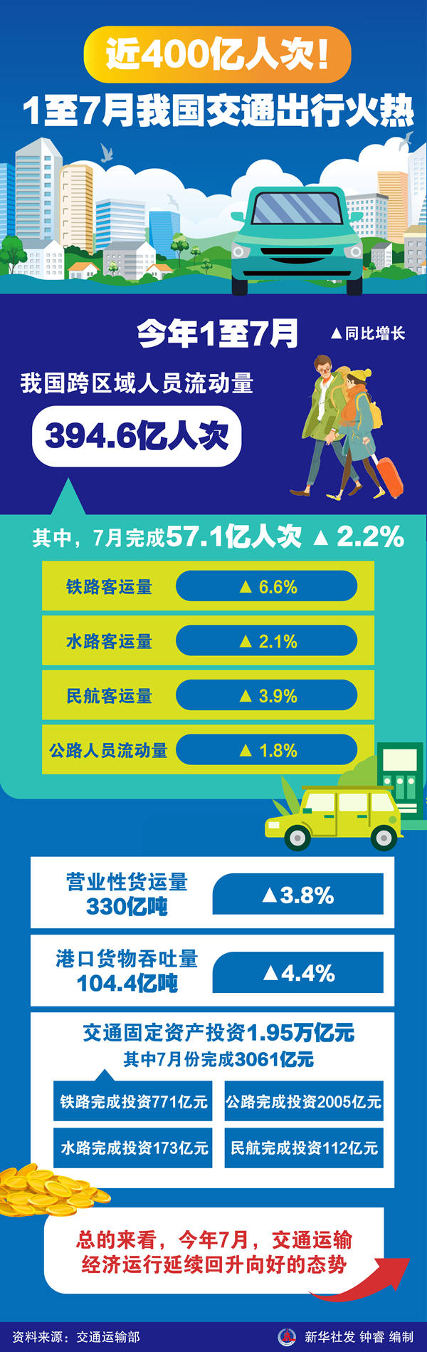新华社北京8月27日电(记者叶昊鸣)今年1至7月,我国跨区域人员流动量达394.6亿人次,同比增长3.9%。