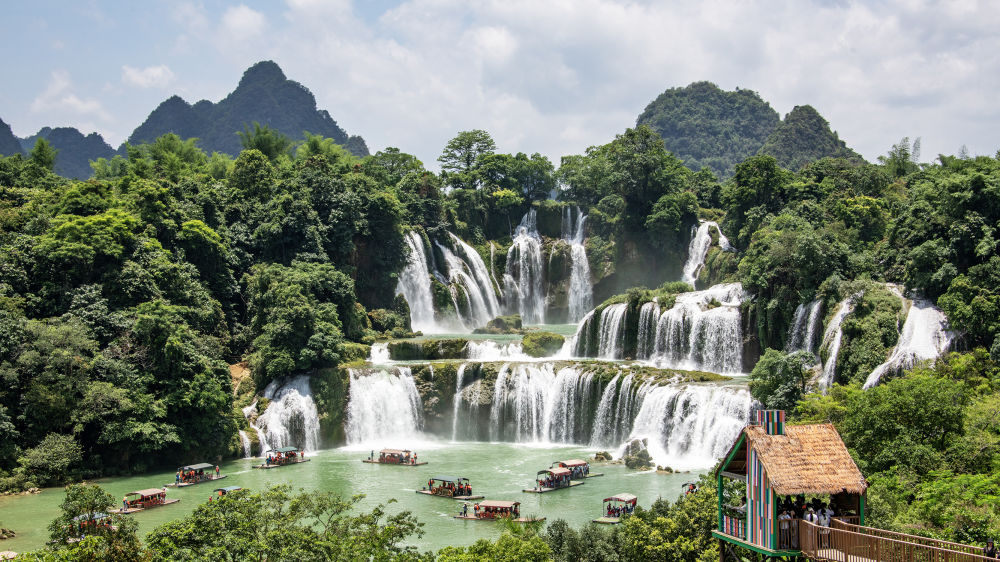 今年6月1日,游客在广西崇左市大新县德天瀑布景区游览。新华社发(赵京武摄)
