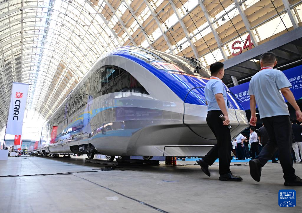 9月18日,参观者从智能市域列车旁经过。新华社记者 李紫恒 摄