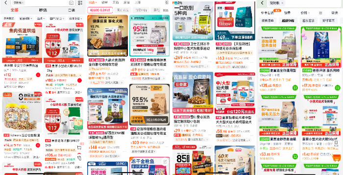 有消费者反映,为给宠物选到合适口粮,需像科研人员一样仔细研究配料表、检测报告和价格,以防“踩雷”。部分电商平台上,宠物粮广告铺天盖地,“高蛋白42%”“冻干锁鲜”等宣传语令人眼花缭乱,难以抉择。