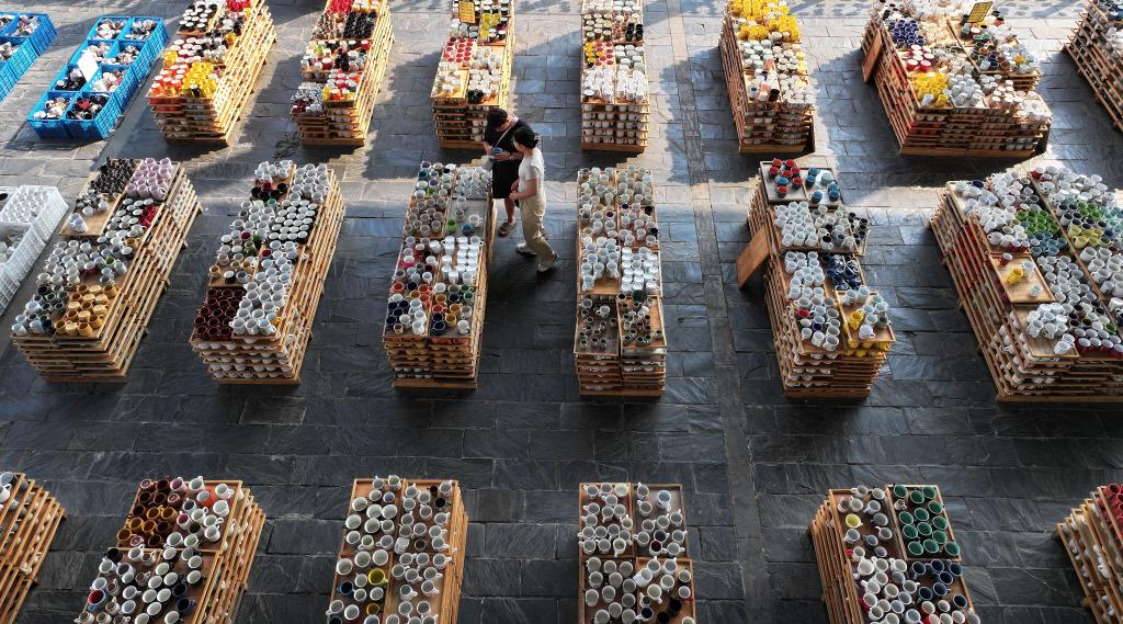 2024年9月26日,游客在醴陵市一处“低价捡瓷区”挑选瓷器。新华社记者赵仲志 摄