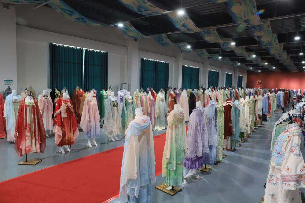 曹县有爱云仓汉服基地的汉服展厅。新华社发