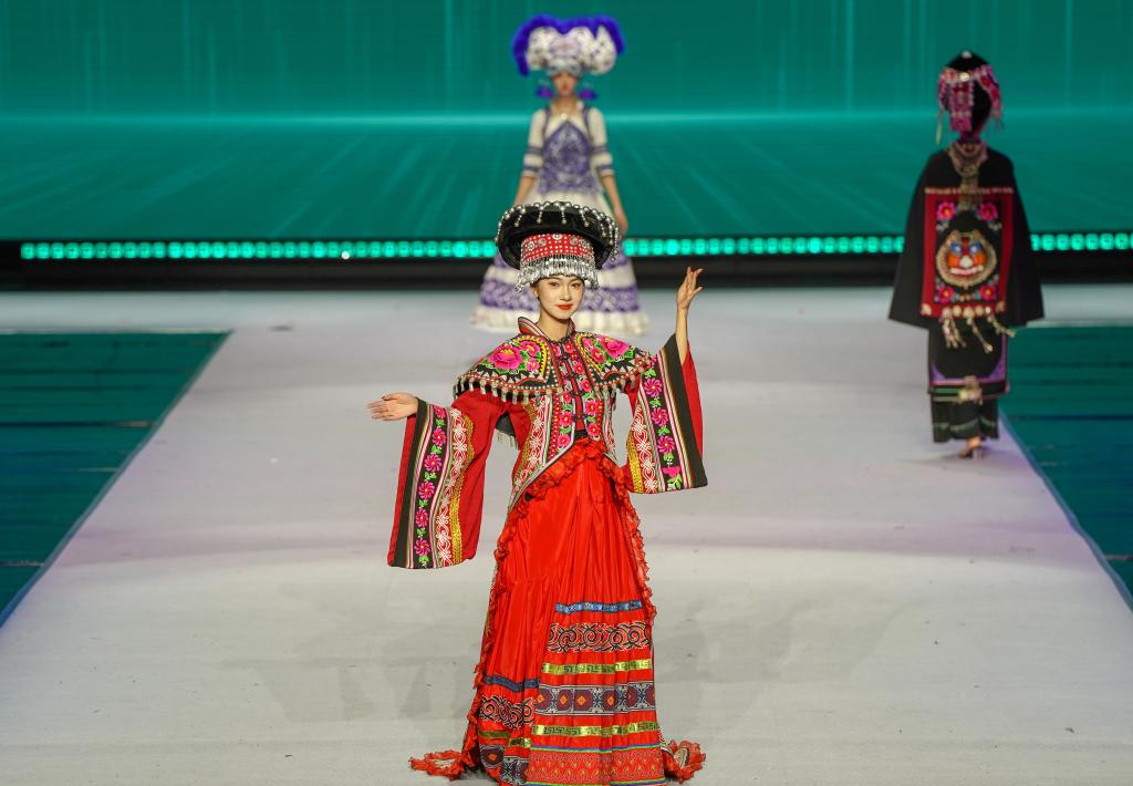 模特身着民族时装在T台上走秀。新华社记者 彭奕凯 摄