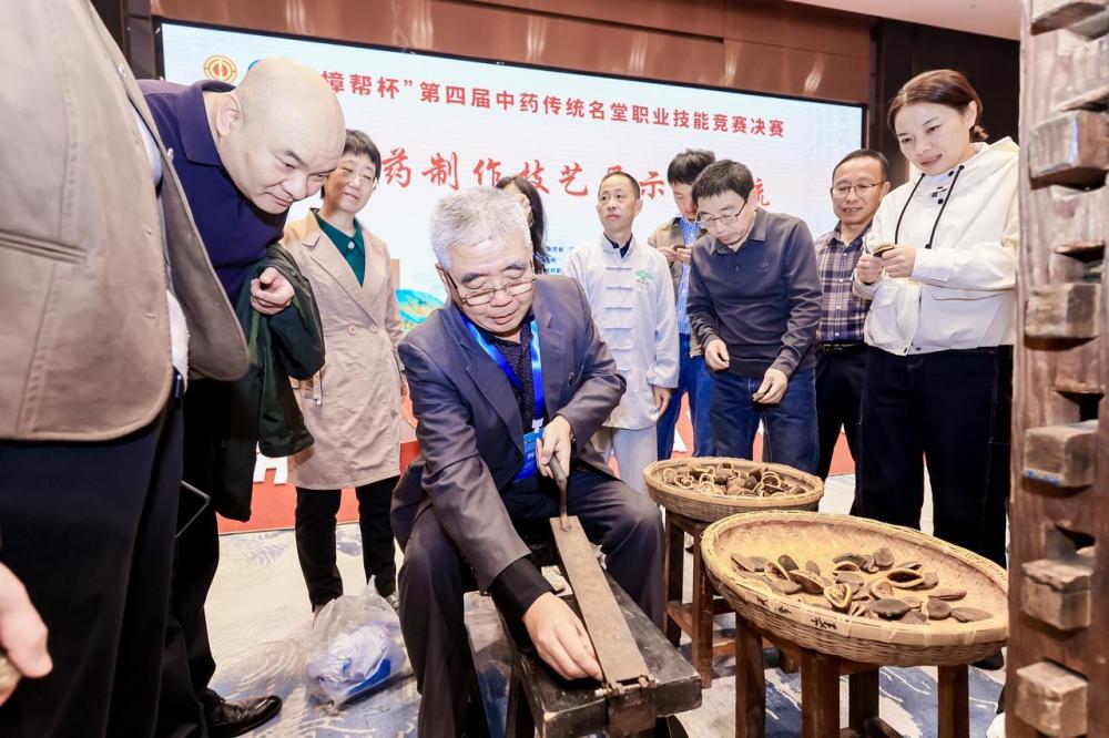 第四届中药传统名堂职业技能竞赛决赛在江西省樟树市举办,选手与嘉宾在现场体验传统中药炮制技艺。新华社发