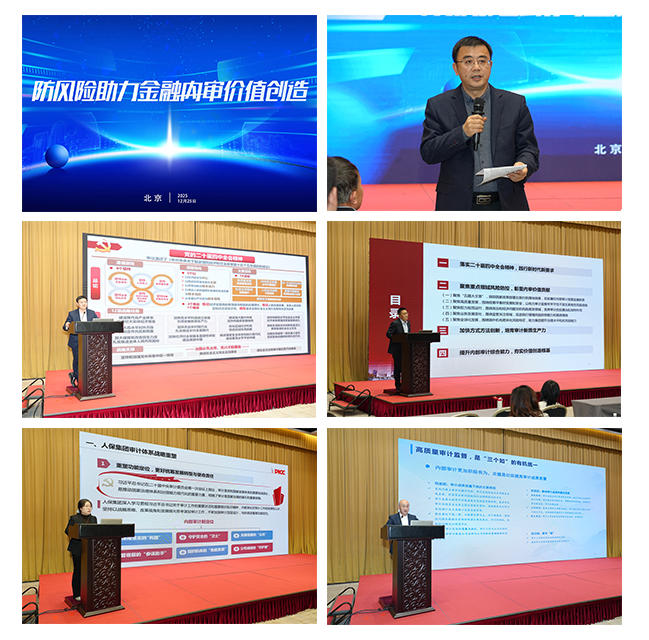 金融分论坛由中国农业银行股份有限公司审计局副局长黎涛主持,中国工商银行股份有限公司现代金融研究院院长、党委深改办主任杨赫作题为《关于学习贯彻党的二十届四中全会精神,加强金融风险防范的思考》的专题报告,中国银行股份有限公司审计部副总经理刘永泉、中国人民保险集团股份有限公司审计部副总经理吴纳、国泰海通证券股份有限公司审计部副总经理姜志宏分别以《以内审履职推动防范化解金融风险,助力中国式现代化》《防风险助力金融内审价值创造——人保集团内审的战略重塑与实践》《聚焦重大风险,彰显内审价值》为题发表演讲。