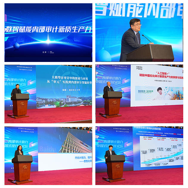 数智化分论坛由中国联合网络通信集团有限公司审计部副总经理李健主持,南京审计大学计算机学院(智能审计学院)院长、协会数智化审计分会副会长兼秘书长徐超作题为《大模型在审计中的探索与应用——从“审元”实践到内部审计智能转型》的专题报告,中国石油化工集团有限公司审计部二级协理员周立云、百度在线网络技术(北京)有限公司内审部信息和数据审计负责人王学文、中国移动通信集团有限公司内审部数据审计处副经理郭宇晨分别以《“人工智能+”赋能中国石化审计新质生产力的探索与实践》《内化AI能力,提升审计质效》《推进“+AI”向“AI+”全面升级,加速构建内部审计新质生产力》为题发表演讲。