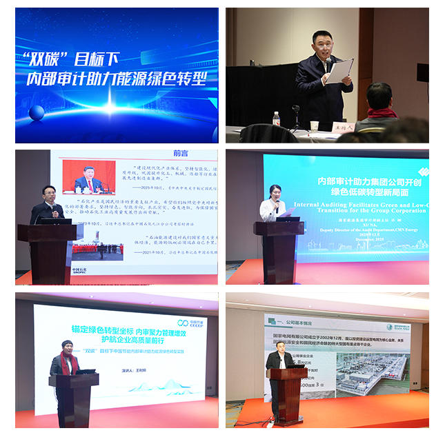 能源分论坛由中国石油天然气集团有限公司审计部副总经理、审计服务中心总经理于开敏主持,中国石化集团经济技术研究院有限公司总经理、党委副书记罗大清作题为《“双碳”目标下的能源化工产业转型发展》的专题报告,国家能源投资集团有限责任公司审计部副主任许娜、中国节能环保集团有限公司审计部主任王利娟、国家电网有限公司审计监管部审计二处处长王司博分别以《内部审计助力集团公司开创绿色低碳转型新局面》《锚定绿色转型坐标 内审聚力管理增效 护航企业高质量前行》《以高质量审计监督助力公司在服务能源绿色转型中发挥积极作用》为题发表演讲。
