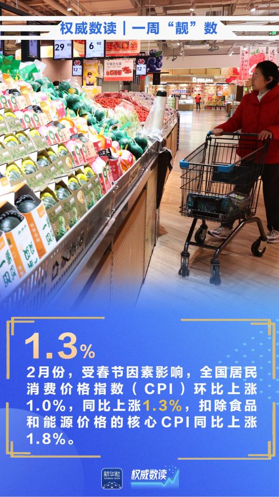 3月13日,为期40天的春运正式落下帷幕,预计春运40天全社会跨区域人员流动量为94亿人次;今年前2个月,我国货物贸易进出口总值7.73万亿元,同比增长18.3%;2月份,我国CPI同比上涨1.3%……本周,这些数据最值得关注!