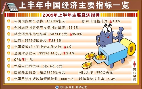 上半年中国经济主要指标一览