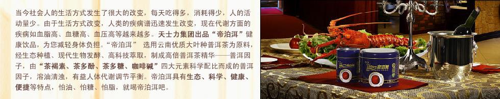 帝泊洱销售公司是在天士力大健康产业主线上应运而生的。茶被世界卫生组织推荐为十大保健食品之首。普洱茶更是因为香清雅、色纯美、味甘甜、饮滋养的自然品质风靡全球。 |