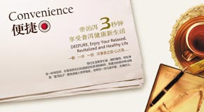 现代生活紧张忙碌,一撕、一冲、一饮,只需3秒钟,就能随时随地、轻松享受一杯帝泊洱,短短的3秒种享受普洱健康生活方式,却是中国茶再次引领世界饮品健康风尚穿越时空的前进。将改变现富裕阶层喝好茶,经济阶层喝劣茶的现象,帝泊洱品质始终如一,让人人能喝上优质茶,使饮茶质量品质化。化繁为简,帝泊洱使饮茶习惯人性化。 |